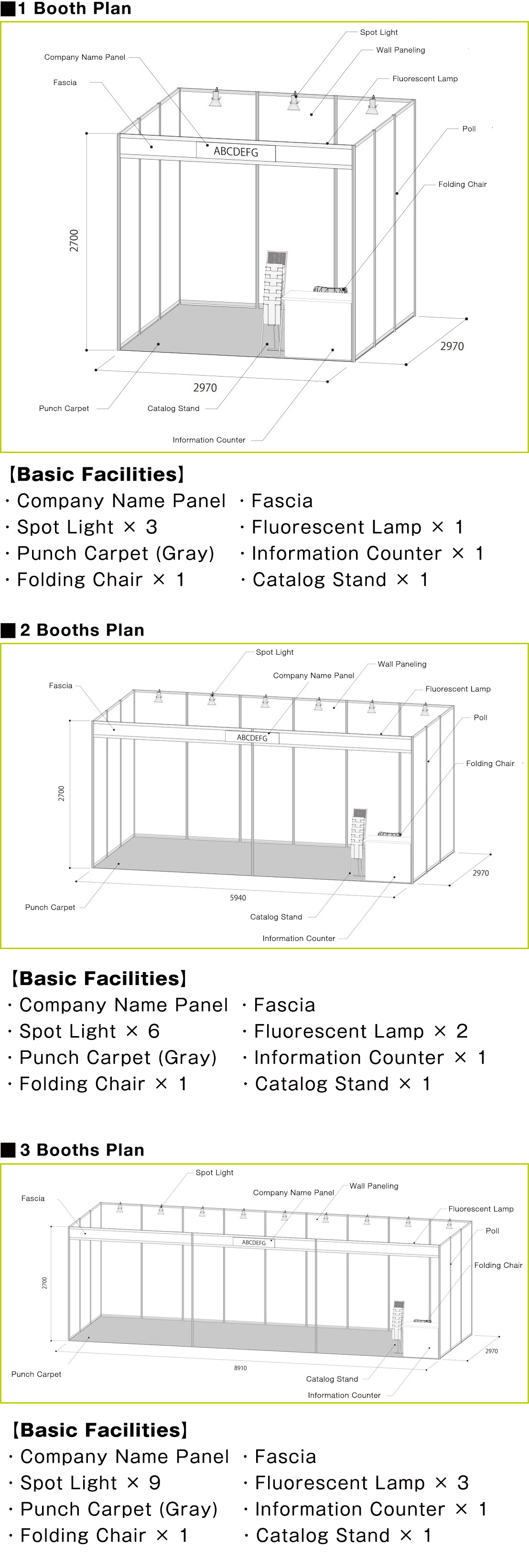 - ■ Each booth position can be chosen by exhibitors at the exhibitor briefing (scheduled to be held early August) in the order of their applications received. However,the position of any independent booth (16 or more booths) will be determined by the organizing committee.