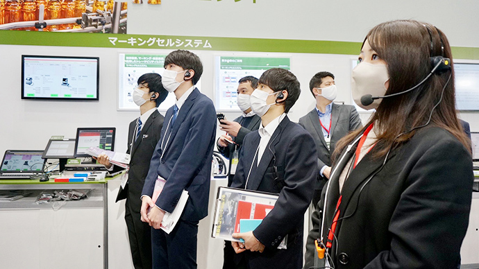 学生を応援する出展者のブースをツアーガイドと共に、学生が訪問します。実際に、見て、体験して、最先端技術に触れ、業界全体の雰囲気を体感することができます。
